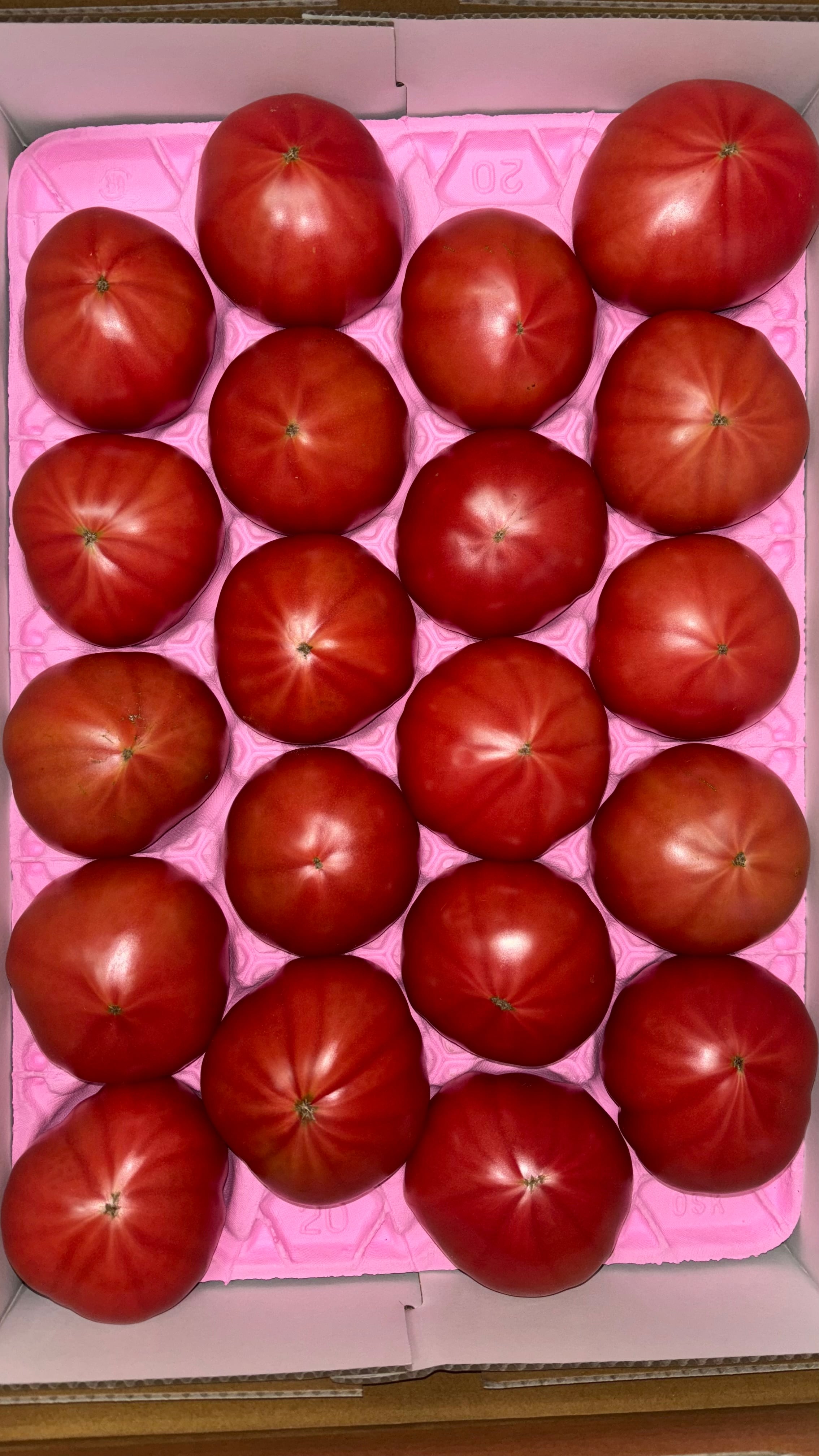 トマトの品種は桃太郎トマトです。20個 トレイ入り 4.5㎏以上 4400円。